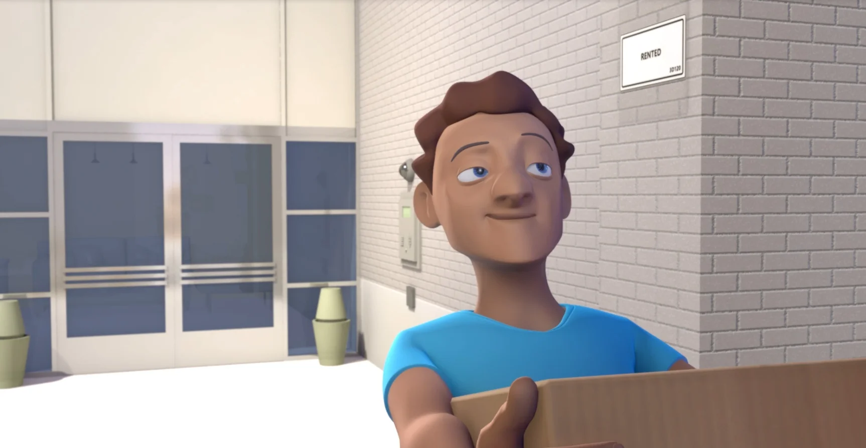 A character named Todd moves into his new apartment but first he has to get through the door.